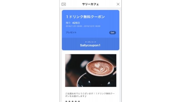 クーポン機能は、アカウントを登録してくれているユーザーに対して、自分たちの商品やサービスを利用してもらうために配信するものです。
