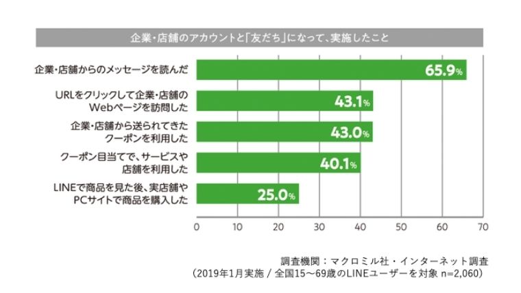 より多くのユーザーに様々なマーケティングやアプローチができるほか、さまざまな反応や行動を喚起することもできるのです。中でも、商品・サービスのプレゼントや割引などお得な特典が受けられるクーポンは、ユーザーの約4割が「利用した」と答えるなど影響力を持っていることが分かります(上図参照LINE公式アカウントでクーポン配信|集客・販促に役立つ賢い使い方 (linebiz.com)より)。
