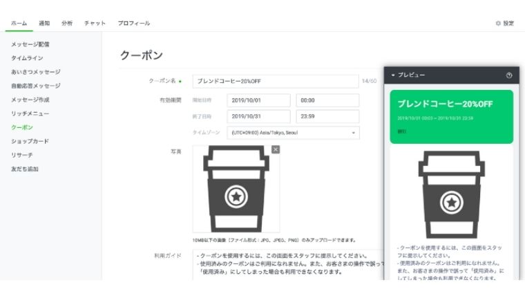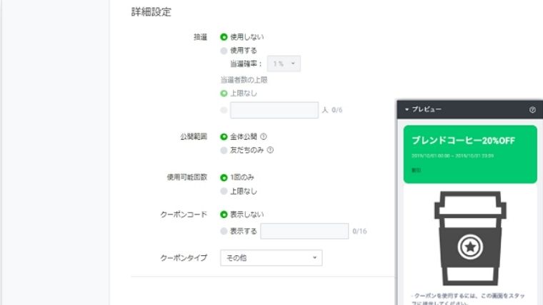 - LINEのクーポン作成で設定できる項目にはどのようなものがありますか?