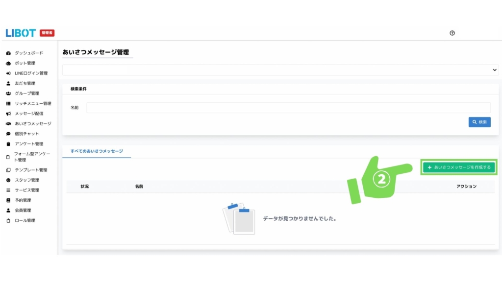 ②あいさつメッセージ管理ページで「あいさつメッセージを作成する」を選択