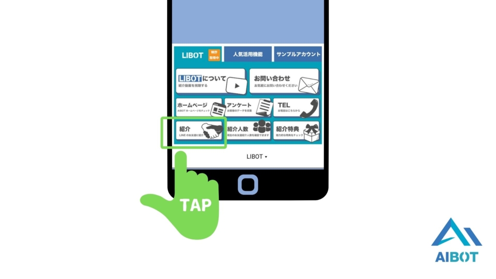 1. 友だちユーザーが、リッチメニューの「紹介」をタップ