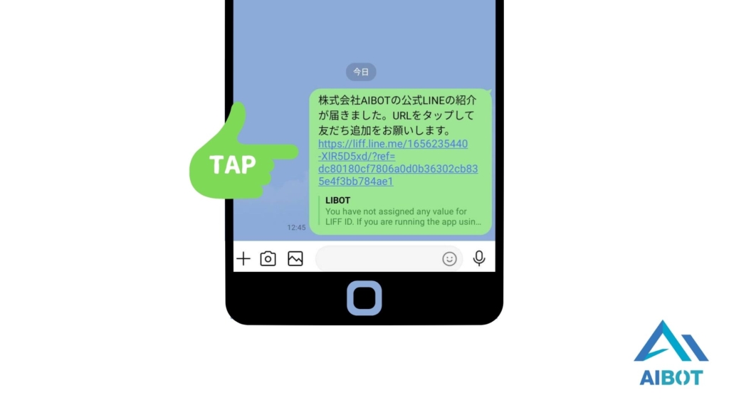 紹介された側のユーザーは、上記のリンクをタップし友だち追加をすることで、アカウントを友だち追加することが可能です。以上が「紹介メッセージ」の機能となります。