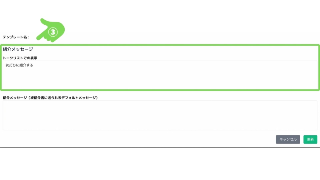 ③のエリアでは、紹介する方のユーザーへの「メッセージ」(上記画像黄緑色の枠)を編集することが可能です。