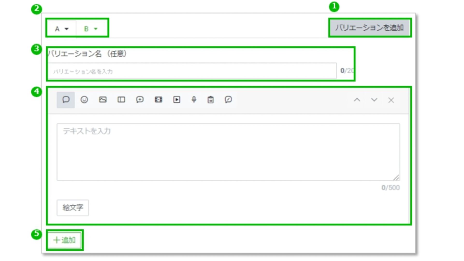 クリックするとバリエーション(効果を比較したいメッセージ)が追加できます。
