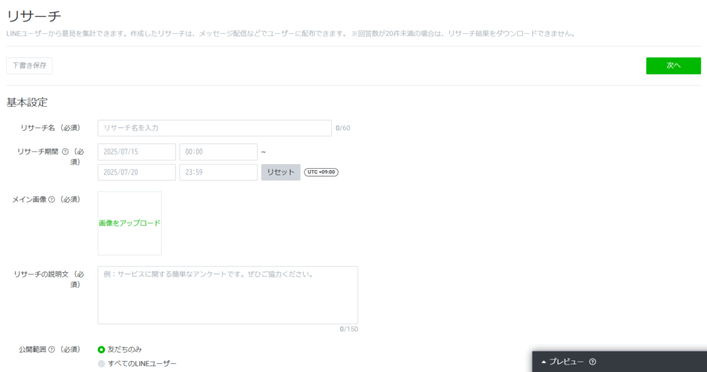 では、LINEリサーチ機能の作成方法について解説して行きます。