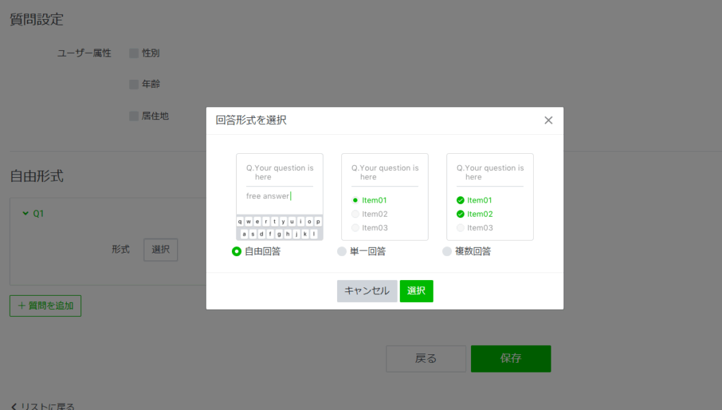 質問の形式を選択・保存をクリック