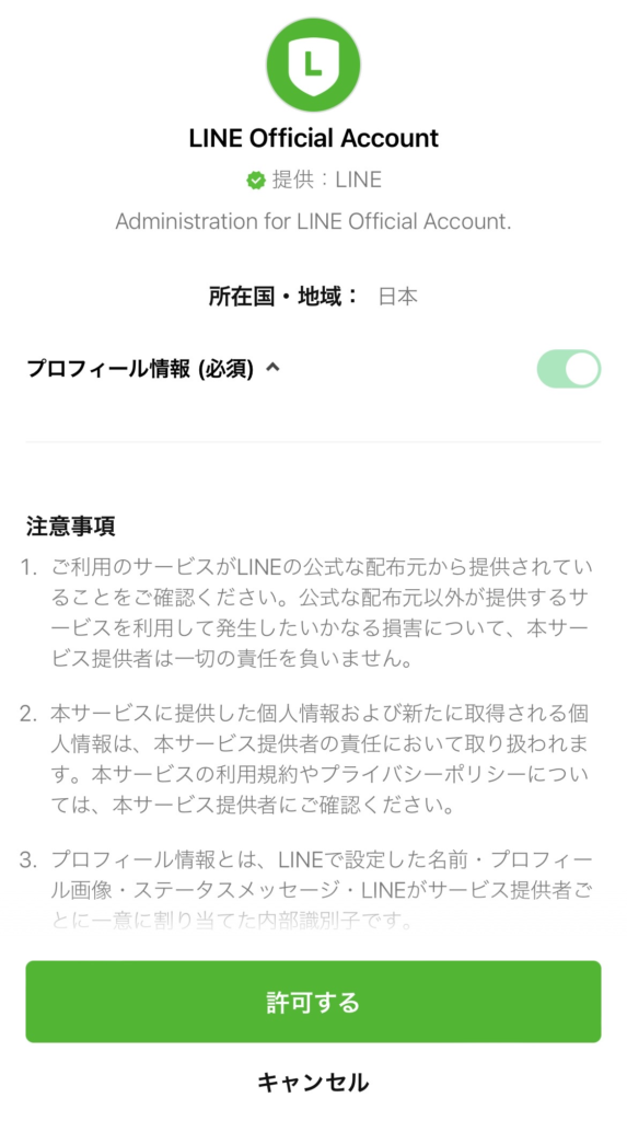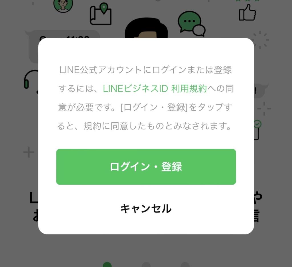 LINE公式アカウントに登録する際に、まず最初に出てくるのはこの画面になります。