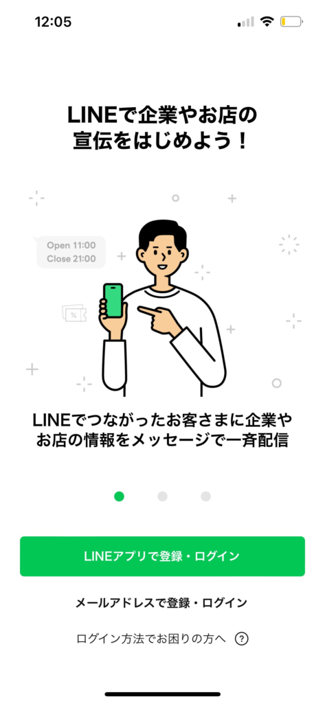 LINEアプリで登録・ログイン:普段使用しているLINEアカウントを利用して登録します。個人のLINEアカウントとビジネスアカウントが連携されますが、友だちや家族に通知されることはありません。