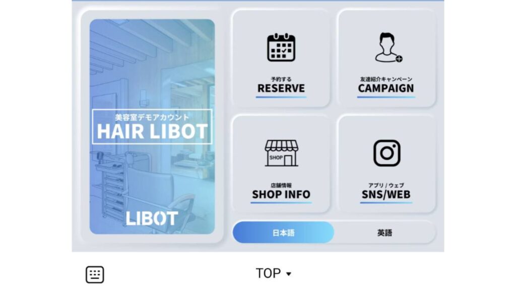 ヘアサロンのリッチメニューでは、ユーザーが知りたい店舗情報や予約機能を1つのページに集約することで、ユーザービリティが非常に高いリッチメニューにできます!