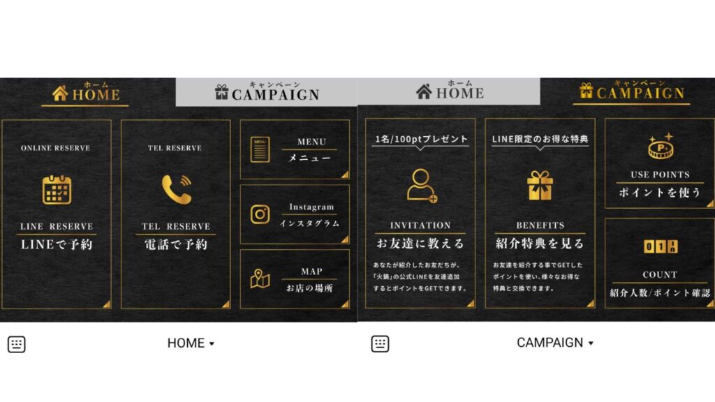 リッチメニューは業種や発信したい内容などによって、構成が大きく異なります。