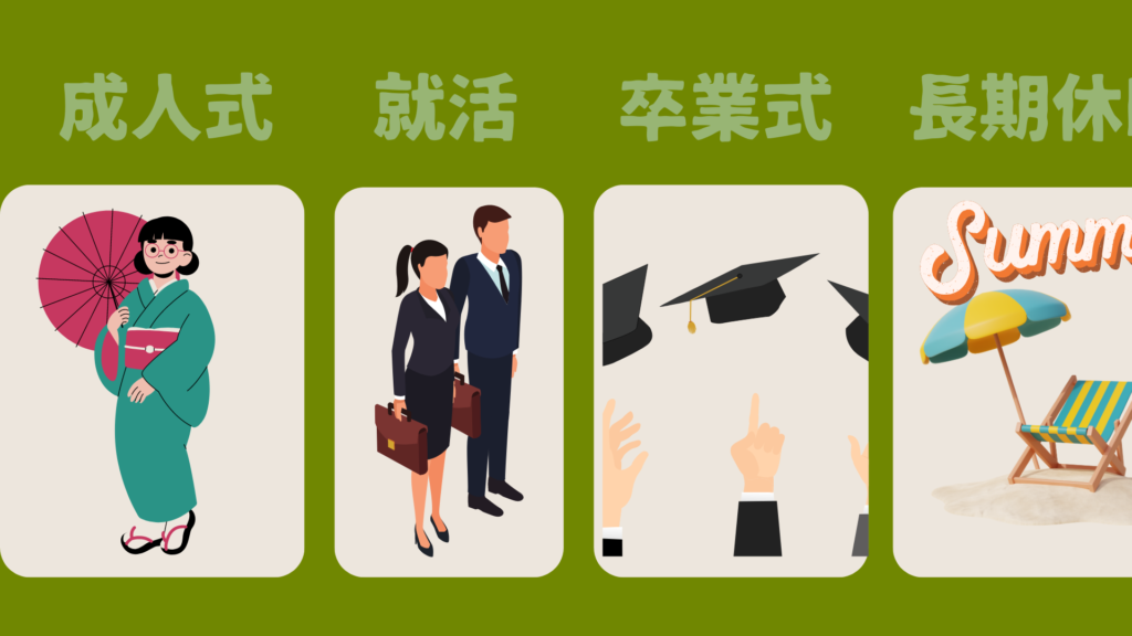 大学生を例に挙げると、上記の画像のように、さまざまなイベントがあります。