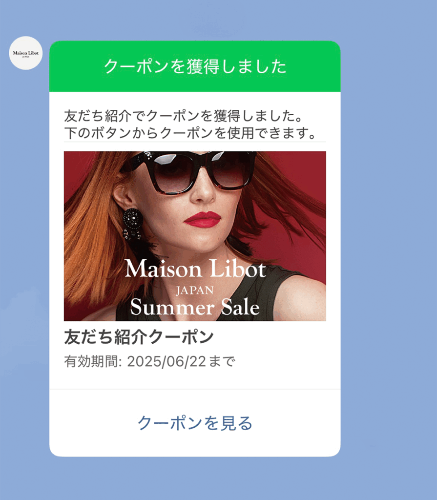 LINE公式アカウントから友だち紹介クーポンが配信されます。