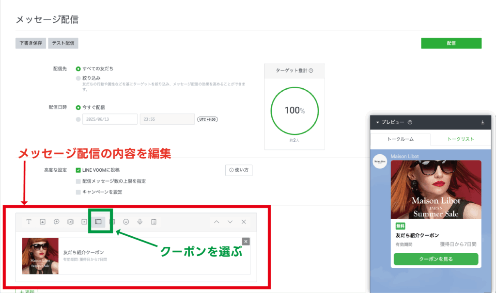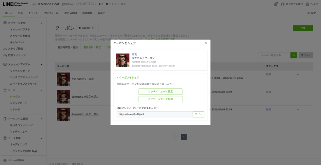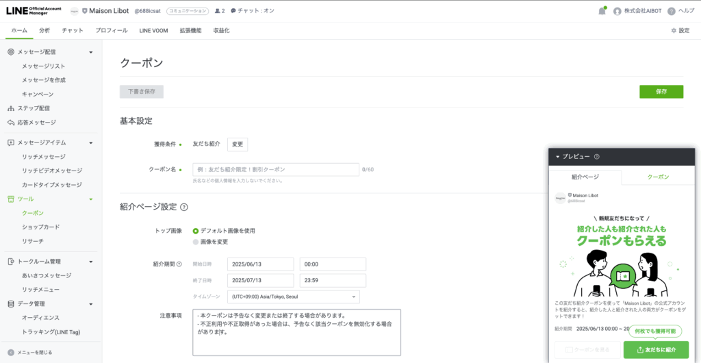 「友だち紹介クーポン」は、LINE公式アカウントのクーポン機能の一つです。