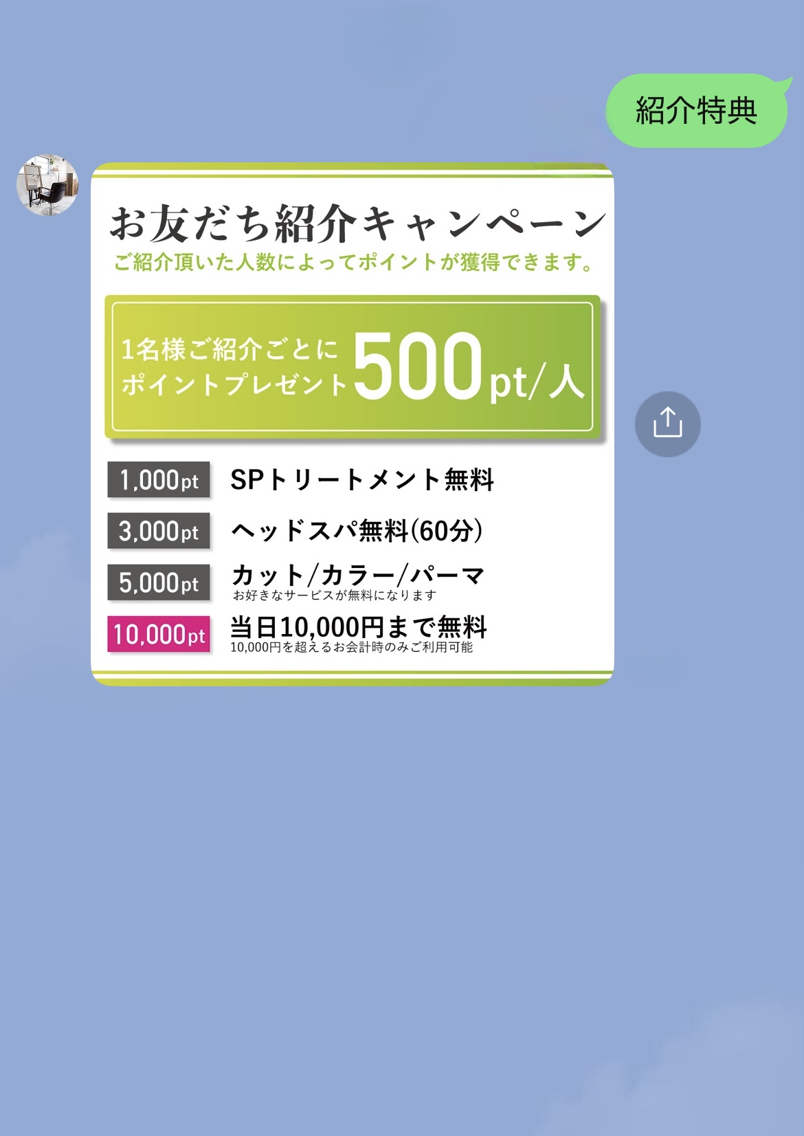 → VIP候補のユーザーを把握できるので、特別待遇の導線づくりに◎ - 10人紹介:次回来店が“実質無料”になるレベルの超特典
