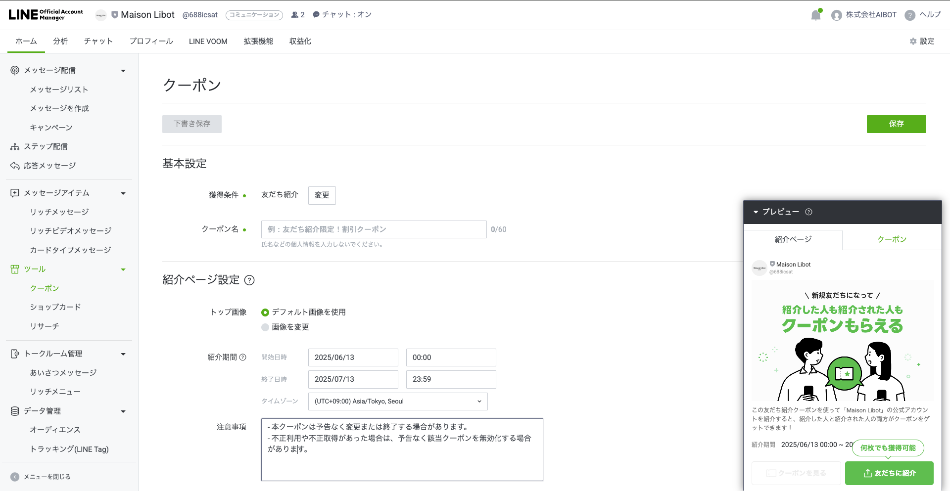 では早速友だち紹介クーポンの作り方を解説します!