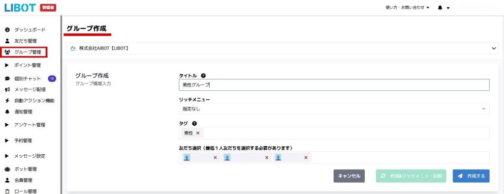 次におすすめしたいLIBOTの機能は、「グループ化機能」です。