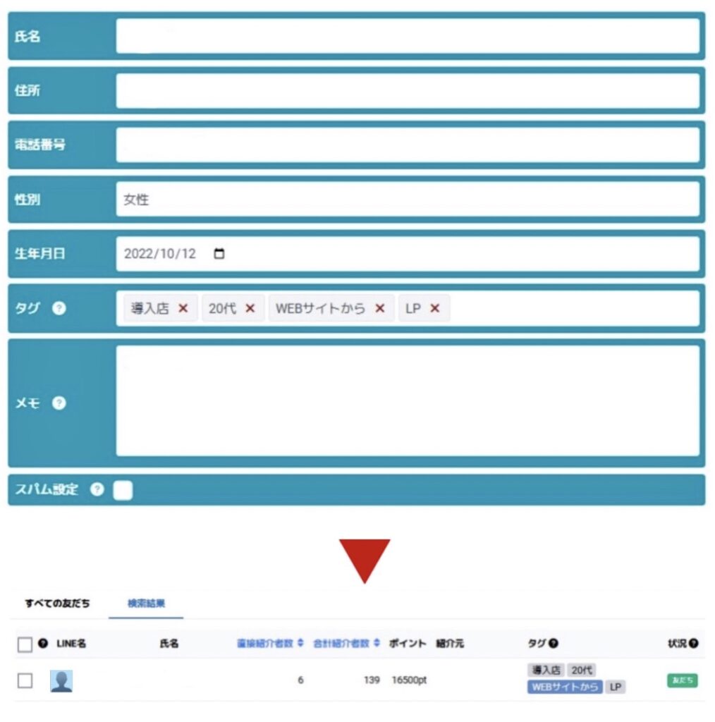 LIBOTの「自動タグ機能」とは、指定した情報(性別、職業、居住地域など)とユーザーを紐づける機能です。