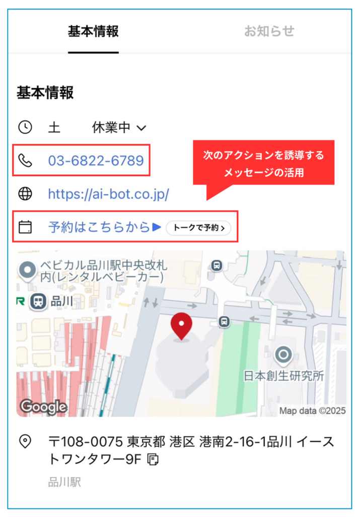 そこで、「予約はこちらから▶」といったシンプルなメッセージを活用することで、次のアクションをスムーズに促すこともできます。