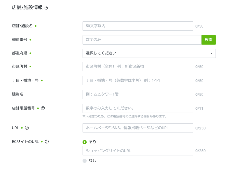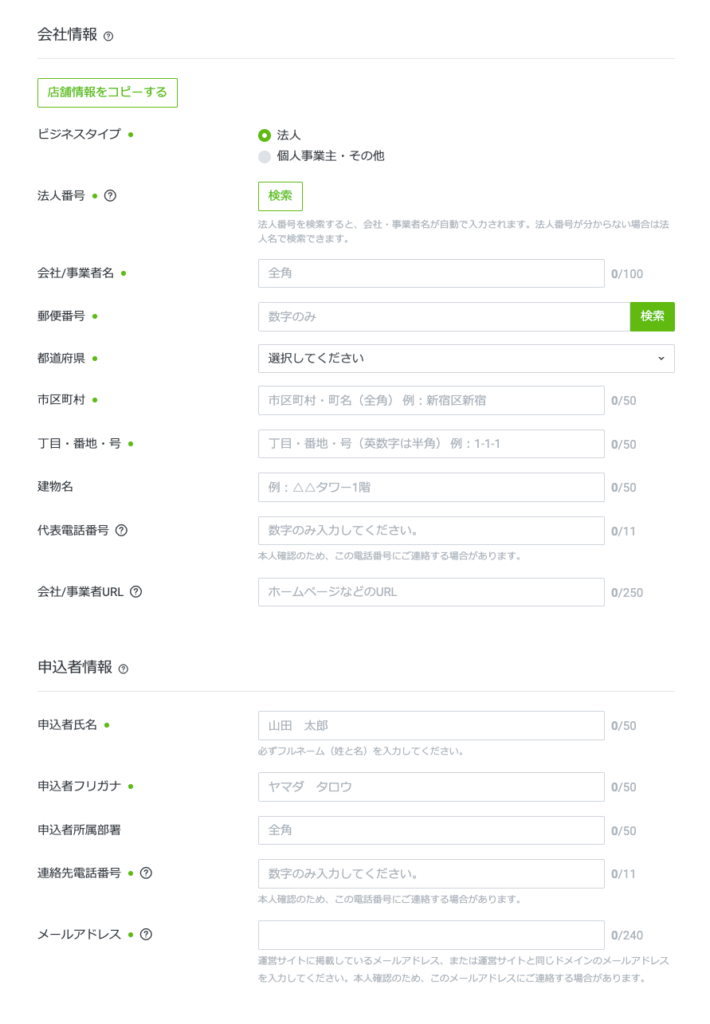 3. 店舗情報や会社情報など必要事項を記載し、送信すれば審査開始。