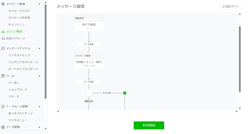 ステップ配信とは、友だち追加したユーザーに対し、「事前に設定した内容やスケジュールに基づいて、自動でメッセージを送信」できる機能です。