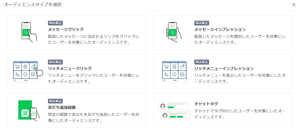 他にも画像のように、クリックしたユーザーだけを対象にメッセージを配信できたり、タグ付けされたユーザーにたいして配信もできます。