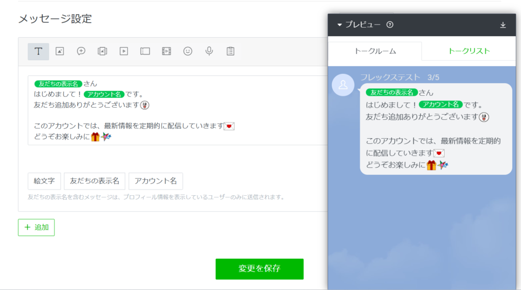 あいさつメッセージは、LINEを追加した際に自動で送られるメッセージのことです。