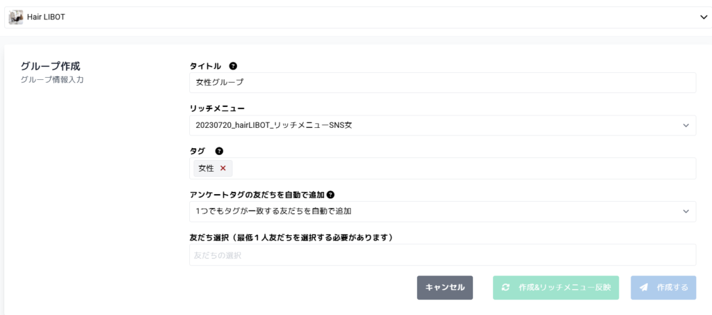 上の画像では女性のタグが付いたユーザーだけのグループが作成されます!