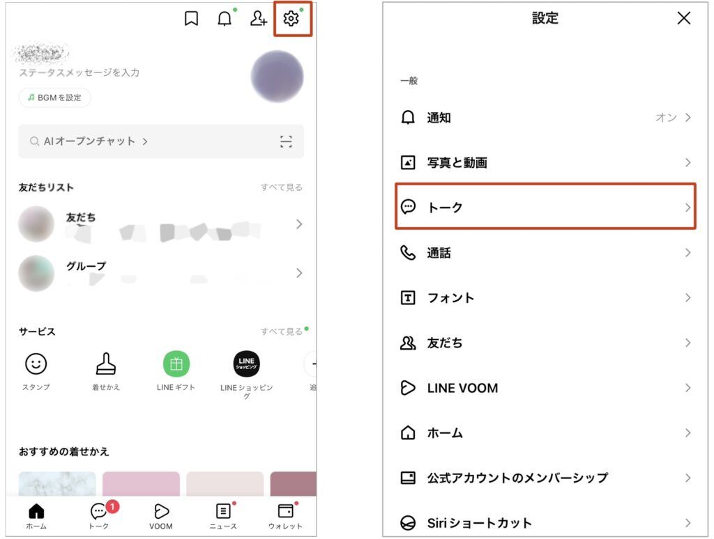 ホーム』→『設定』→『トーク』をタップします。