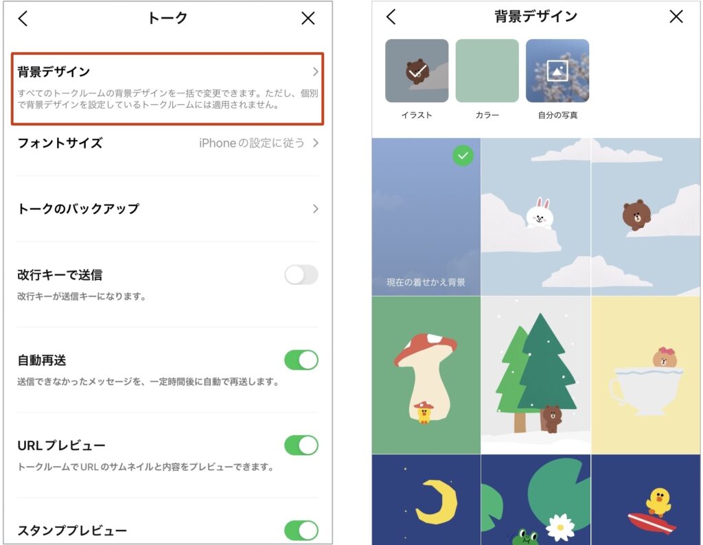 トーク背景画面の変更方法