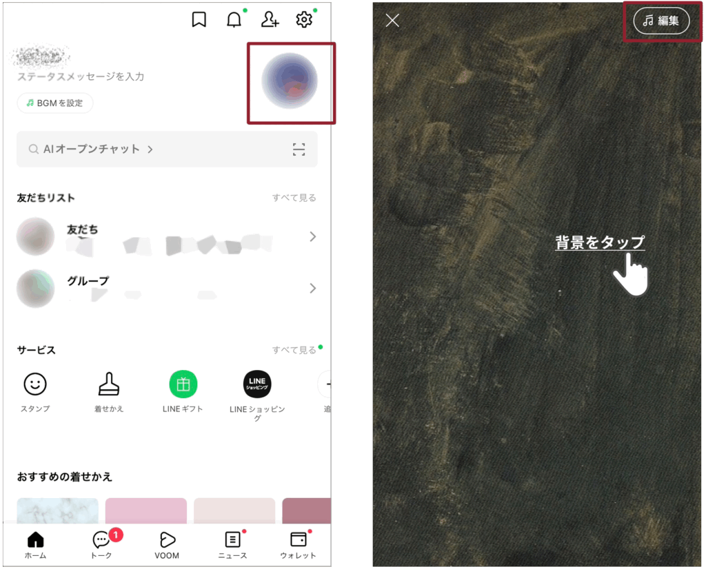 LINEのプロフィール背景を変更するには、以下の手順を行ってください: