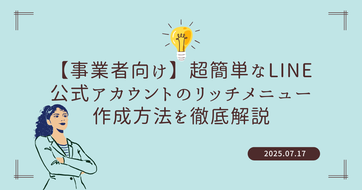 この記事は、LINE公式アカウントの【リッチメニュー】の作成方法に焦点をあてた内容となっています。