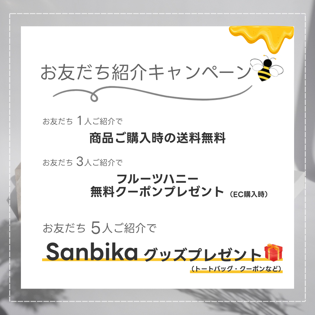 - 3人紹介:フルーツハニー無料クーポンプレゼント(EC購入時)