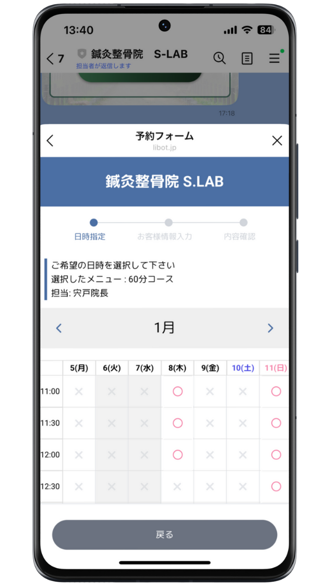 解決策として、外部ツールLIBOTを利用し、LINE公式アカウントで「空き状況が見える」予約導線を構築しました。