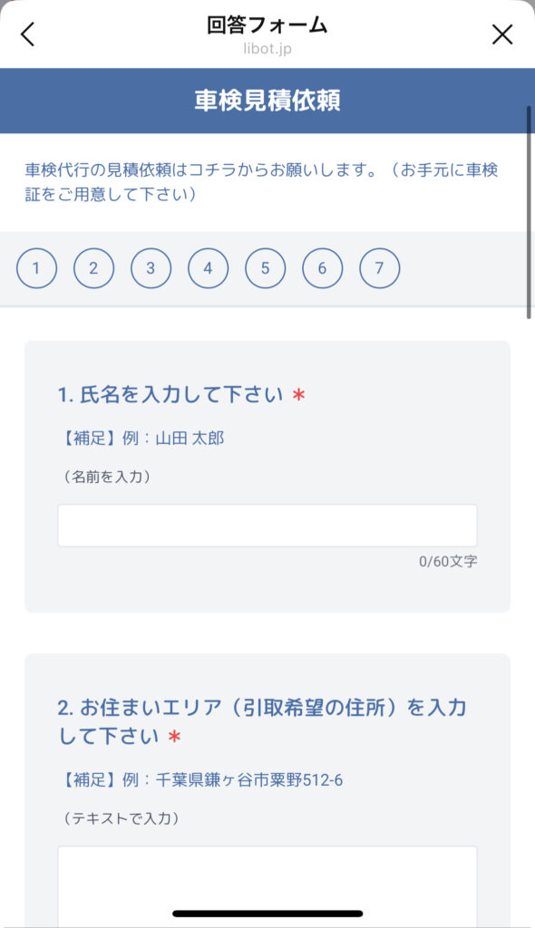 顧客情報 / 車種やタイヤ情報 / 見積依頼内容 を事前に回答してもらう設計に変更しました。